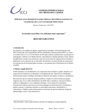 ICCJ, Reflexiones acerca del papel de los grupos religiosos e interreligiosos en promover la reconciliación sobre y en el convulsionado Medio Oriente, Shavuot / Pentecostés - 2013/5773, (spanish).